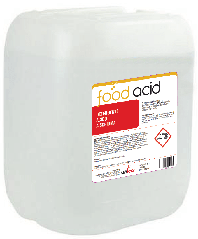 Detergente liquido acido per la disincrostazione periodica delle superfici. Non corrode acciaio inox, cromature e rivestimenti ceramici.