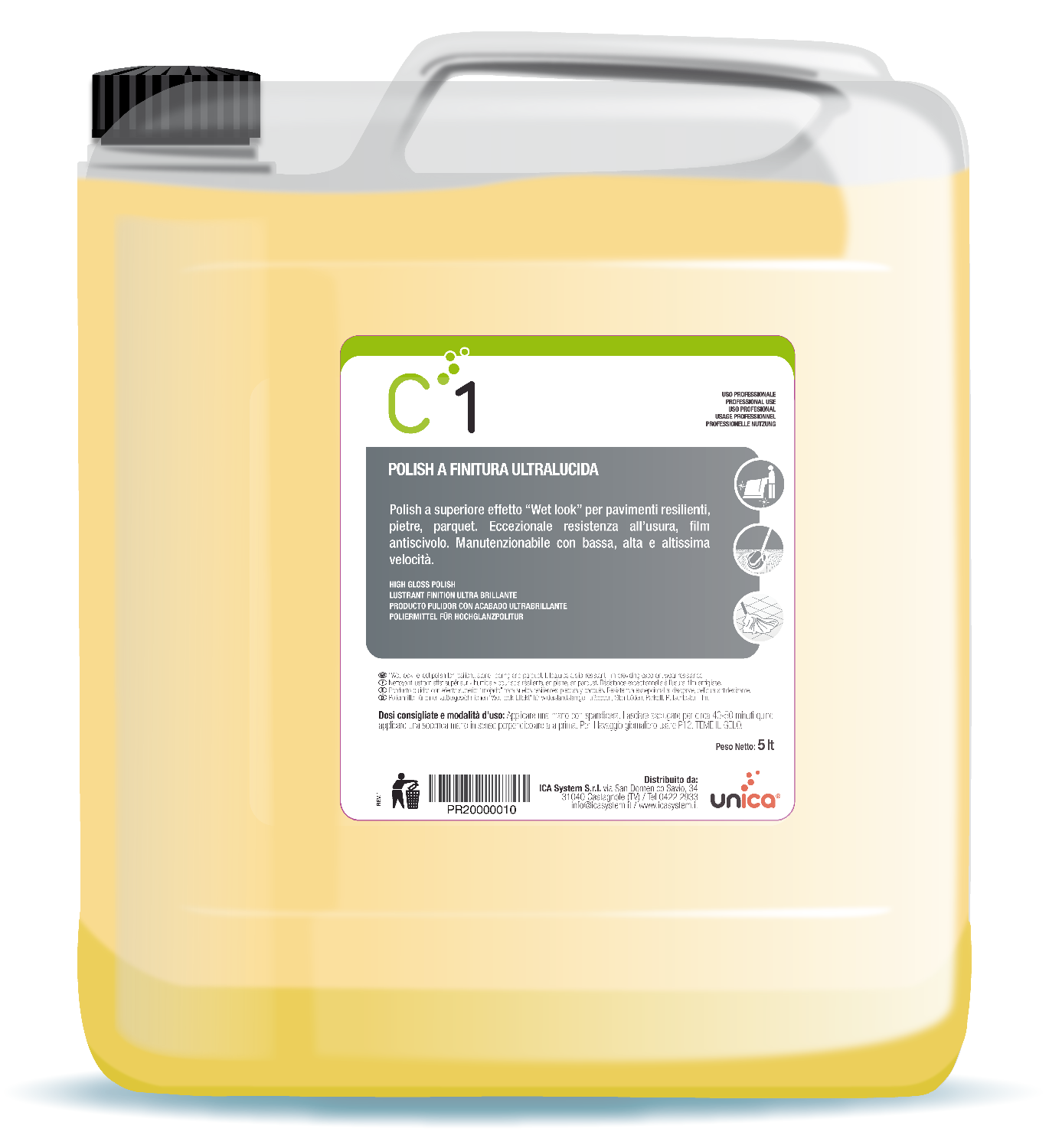 Polish a superiore effetto “Wet Look” per pavimenti resilienti, pietre, parquet. Eccezionale resistenza all’usura, film antiscivolo. Manutenzione effettuabile con bassa, alta e altissima velocità.