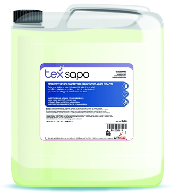 Detergente liquido per lavanderie industriali privo di tensioattivi sintetici. La speciale miscela di saponi naturali fornisce elevate performance di lavaggio su tessuti bianchi e colorati. Contiene saponi naturali che migliorano lo stiro. Buone capacità di sospensione e dispersione