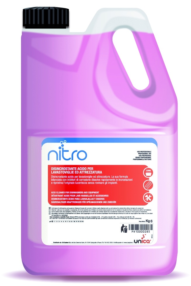 Disincrostante acido per lavastoviglie ed attrezzature. La sua formula bilanciata con inibitori di corrosione dissolve rapidamente le incrostazioni e ripristina l'originale lucentezza senza rovinare gli impianti.