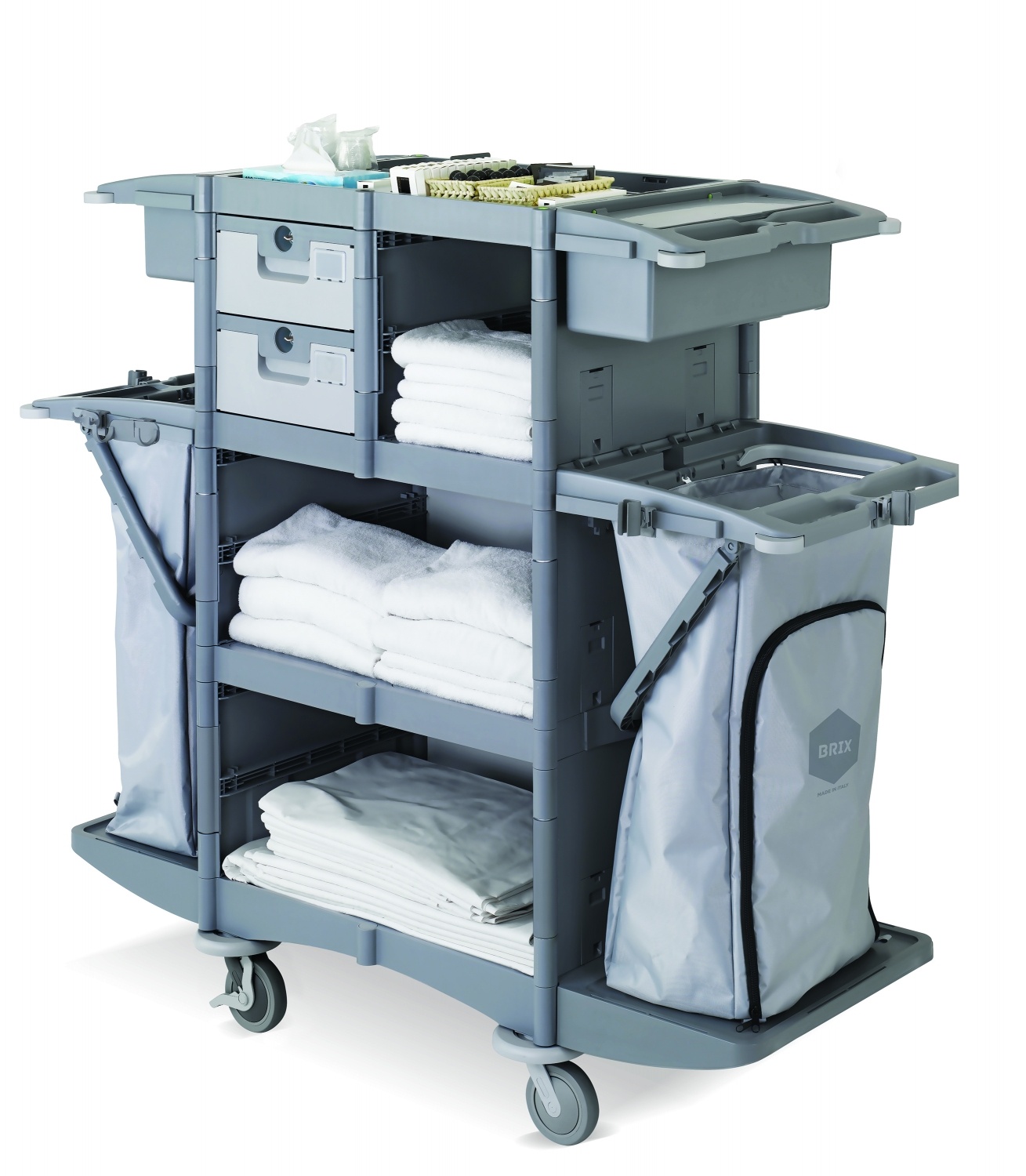 Struttura con doppio sacco per la raccolta della biancheria utilizzata, tre pratici vani multiuso e le vaschette per la linea cortesia.