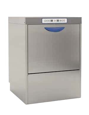Lavabicchieri sottotavolo, 30 cesti/h, doppia parete, guide imbutite, boiler atmosferico, air-gap, termostop, controllo elettronico, bracci di lavaggio e di risciacquo indipendenti in accaio inox, dosatore brillantante, 1 cesto per tazze/bicchieri, 1 cesto posate.