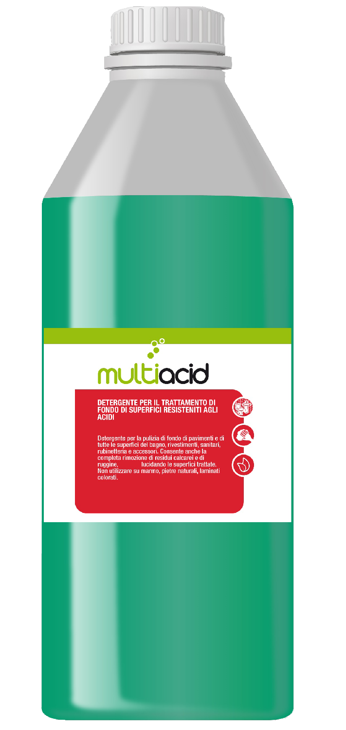 Detergente per la pulizia di fondo di pavimenti e di tutte le superfici del bagno, rivestimenti, sanitari, rubinetterie ed accessori.