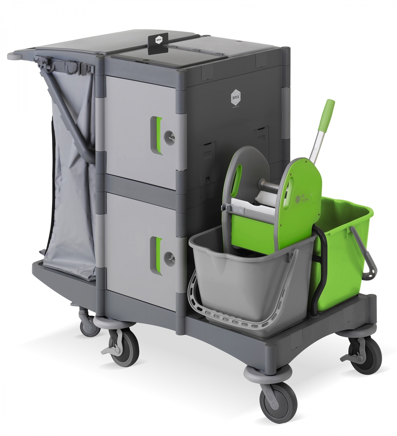 Con due secchi da 15 litri ciascuno e lo strizzatore, è ideale per la pulizia di ambienti medio-piccoli.