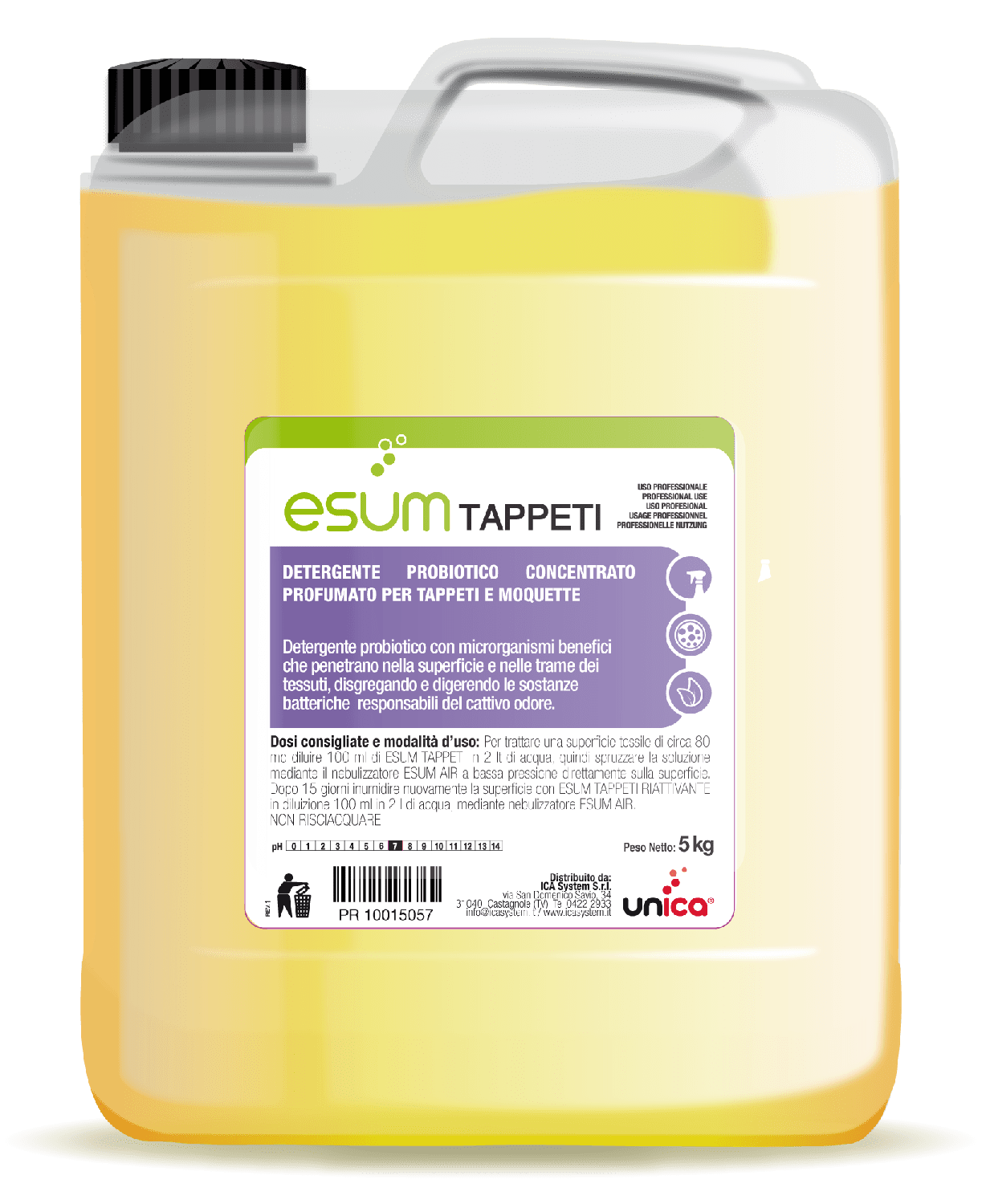 ESUM Tappeti trova applicazione principalmente nel trattamento di tappeti e moquette di camere di hotel. La grande versatilità lo rende ampiamente utilizzabile per la pulizia delle tappezzerie in tessuto di treni, aerei, autobus, imbarcazioni, sale cinematografiche.