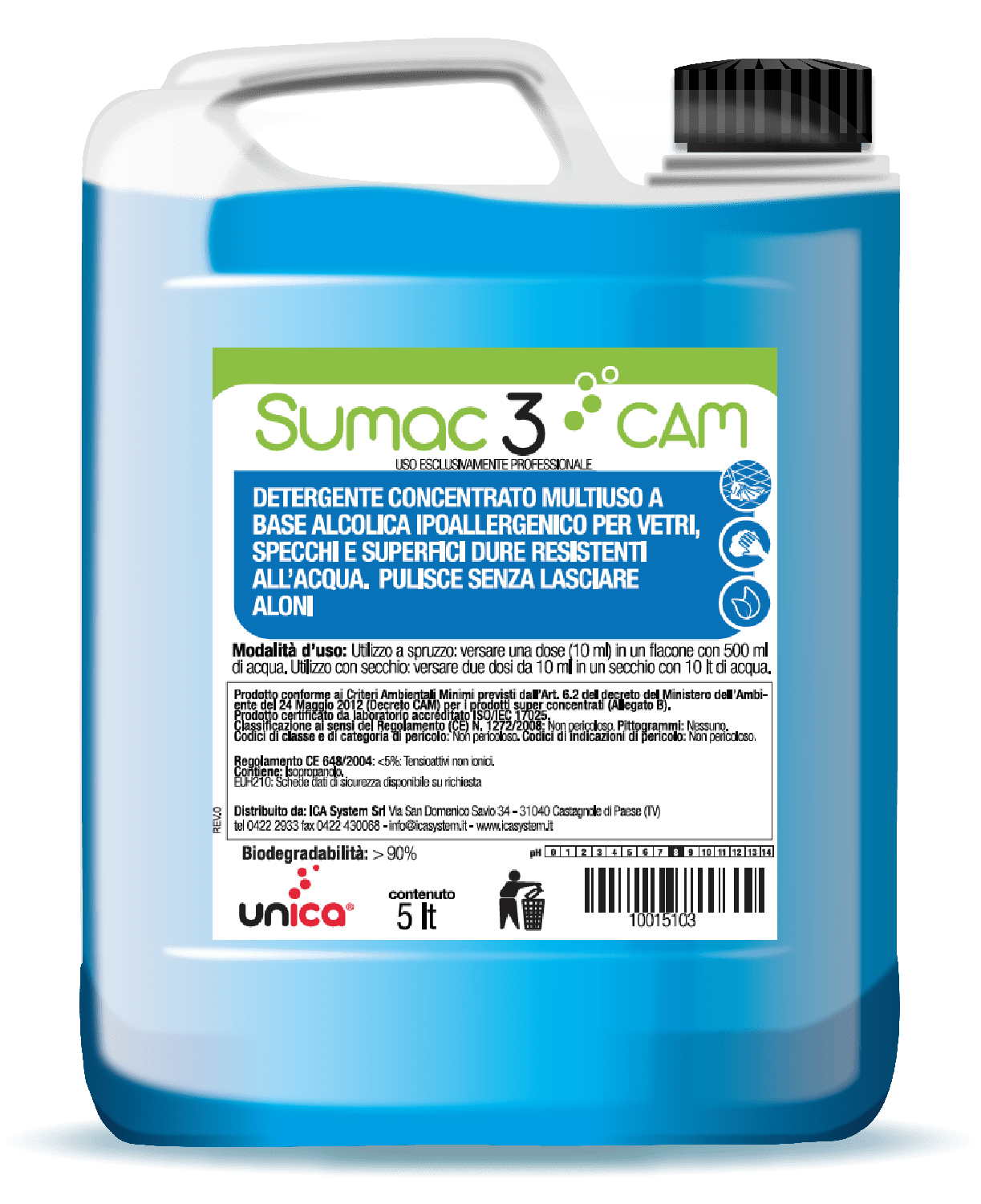 Prodotto conforme ai Criteri Ambientali Minimi previsti dall’Art. 6.2 del decreto del Ministero dell’Ambiente del 24 Maggio 2012 (Decreto CAM) per i prodotti super concentrati (Allegato B).